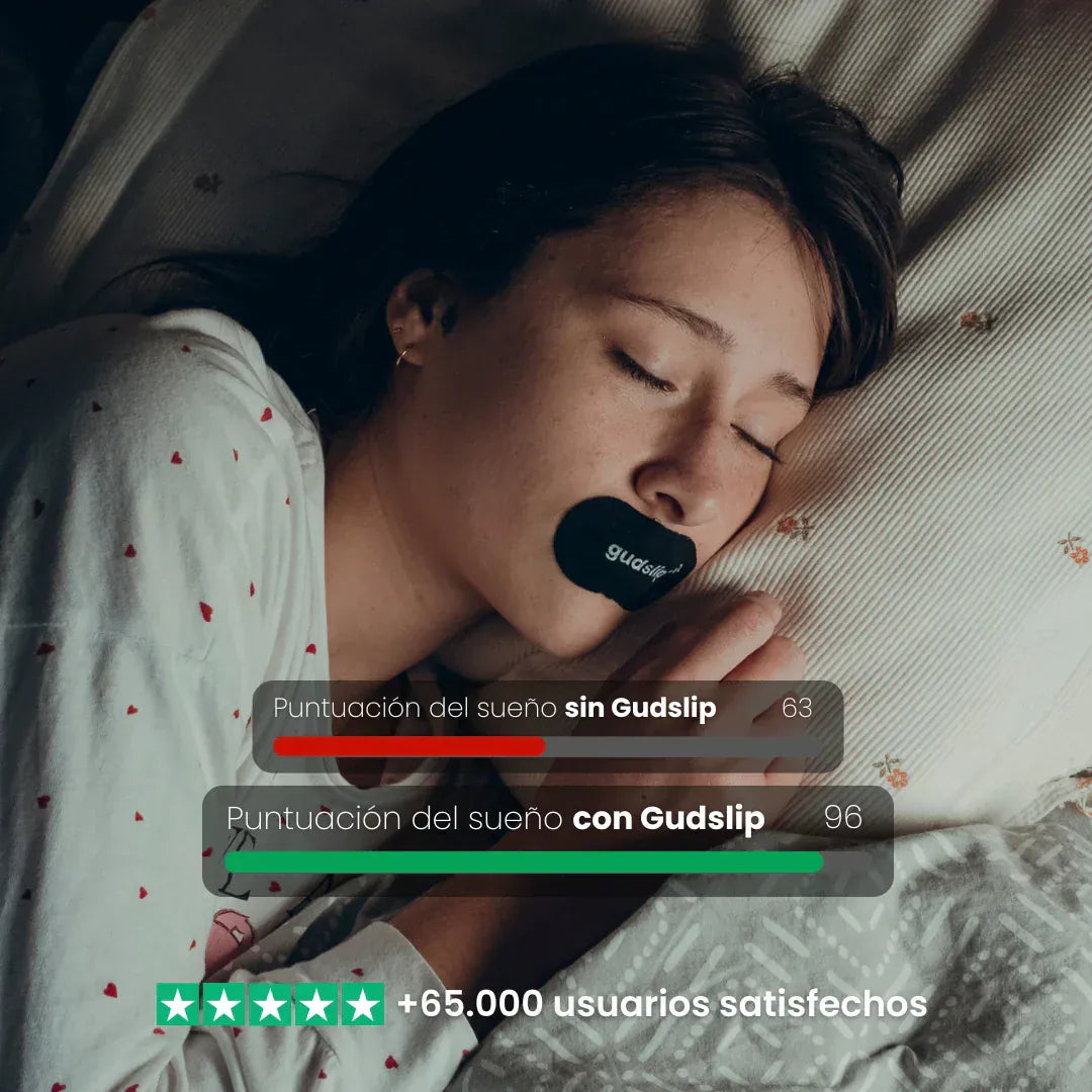 Experimenta un sueño sin esfuerzo con nuestra cinta bucal Gudslip®. Diseñado para promover la respiración nasal, te ayudará a conciliar el sueño más rápido y a permanecer dormido durante la noche evitando la respiración bucal y los ronquidos. Este simple cambio garantiza un descanso más profundo y respalda ciclos REM extendidos para una mañana verdaderamente rejuvenecida.