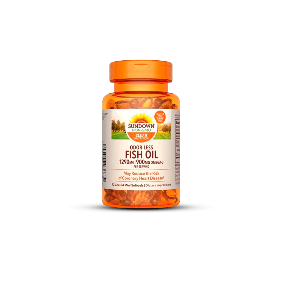 Suplemento Aceite de Pescado Sin Olor 1290 mg Mini Cápsulas Blandas. Fuente concentrada de omega‑3 (EPA y DHA) que apoya la salud cardiovascular, cerebral y articular. Fórmula sin olor y cápsulas mini fáciles de tragar para un consumo diario cómodo y efectivo.