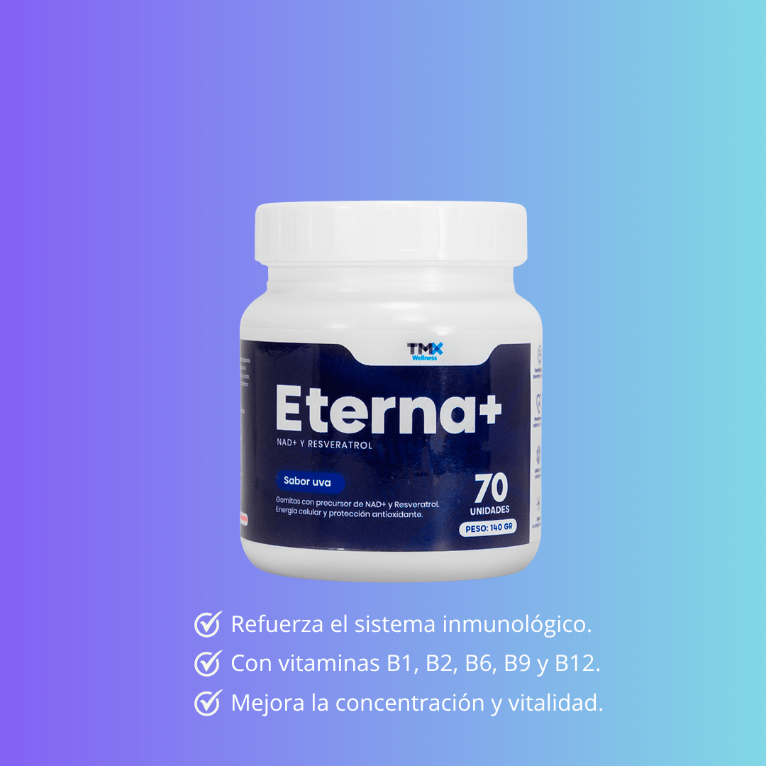 Descubre las GOMITAS ETERNA+, el suplemento ideal para quienes buscan un impulso en su bienestar general. Cada frasco contiene 70 gomitas deliciosas y efectivas, diseñadas para ofrecerte una mezcla potente de nutrientes esenciales que apoyan tu salud y vitalidad.