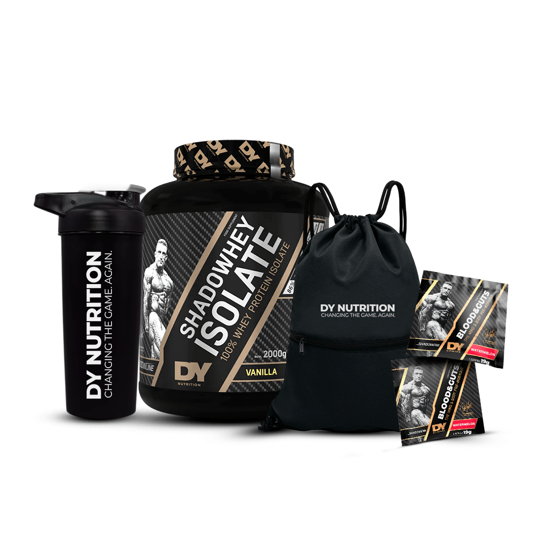Este pack monstruoso incluye además un shaker de 700 ml (sujeto a stock) para preparar tus batidos en cualquier momento, 2 muestras de Blood & Guts para llevar tu entrenamiento al límite, y un bolso deportivo DY perfecto para tu día a día fitness.