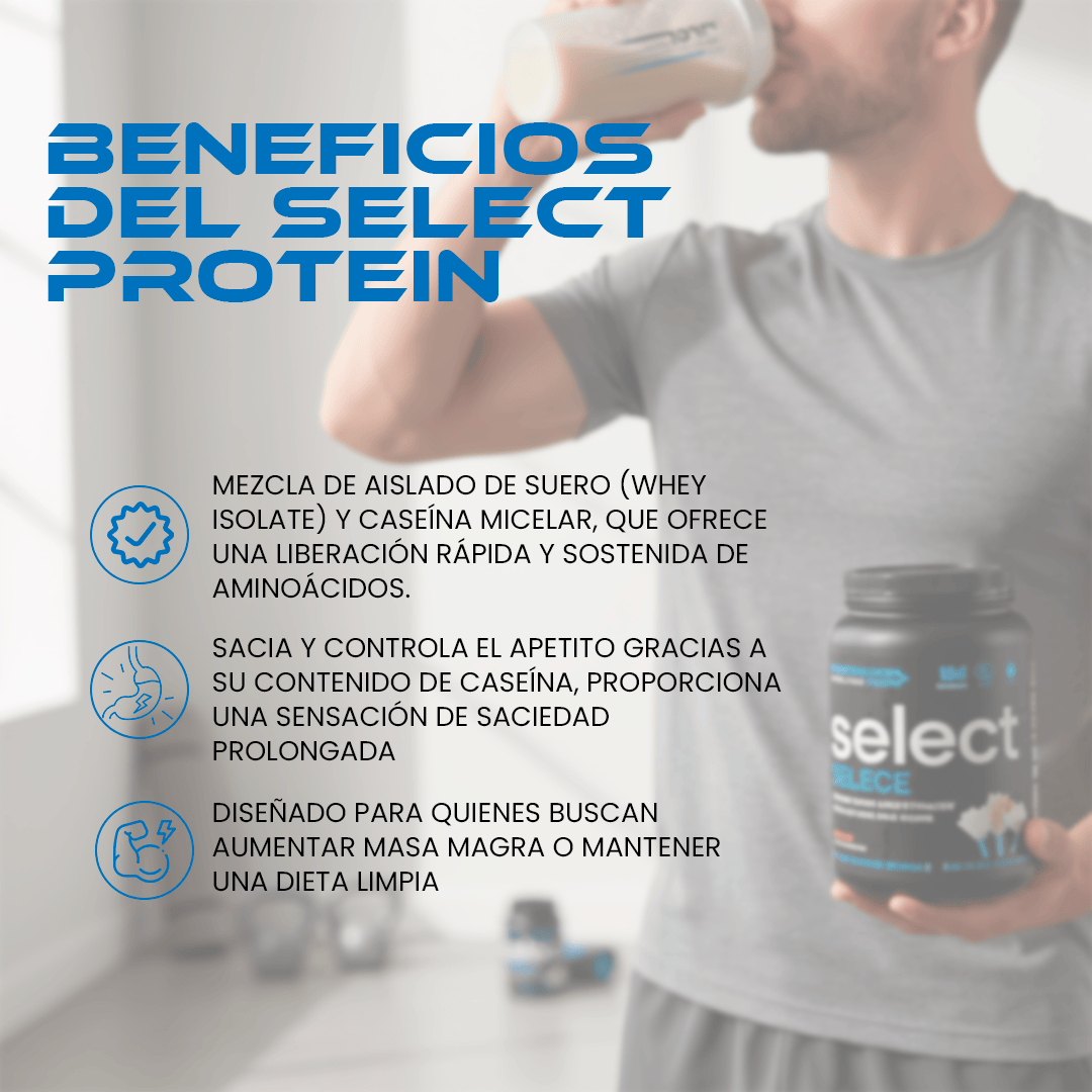 Elige Select Protein y transforma tu rutina de entrenamiento. Es perfecto como suplemento post entreno o como un delicioso tentempié en cualquier momento del día. ¡No esperes más y añade Select Protein a tu carrito ahora mismo!