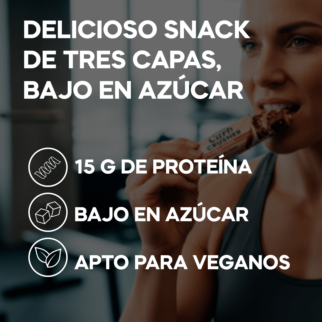 No comprometas el sabor por la salud; disfruta de cada bocado de esta exquisita barra que resalta el delicioso sabor del maní y el chocolate. Si buscas un acompañamiento para tu día a día o un snack rápido antes de ir al gimnasio, Vegan Carb Crusher es la solución perfecta.