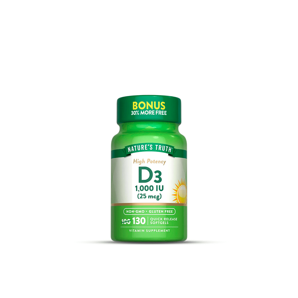Refuerza tu salud diaria con Vitamina D3 1,000 IU de Nature’s Truth. Esta vitamina esencial ayuda a mantener huesos y dientes fuertes, apoya la absorción de calcio y fortalece el sistema inmunológico. Ideal para quienes tienen poca exposición al sol o buscan un refuerzo diario.
